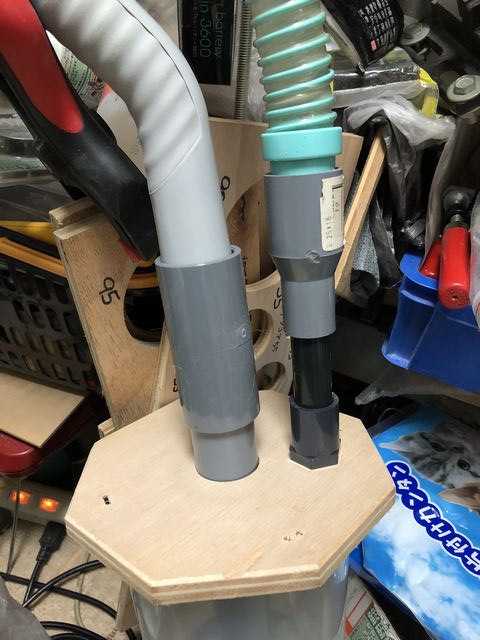 以前も掃除機に付けるタイプの集塵機の製作記事を書いたものの、なかなか満足は出来なかったのですが、徐々に改良し、作り易さ、コストの安さ、視認性の良さ、集まったゴミの捨て易さ等の点から、総合的に現時点で大分改良されたので紹介します。