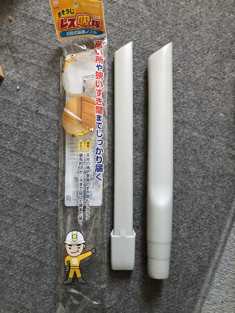 ノズル;ホースのままでは使いにくいので先端には、掃除機に付属のアタッチメントが使えますが、私はダイソーの「レス吸隊」という二段階で最大65cmまで伸ばせる物を使っています。