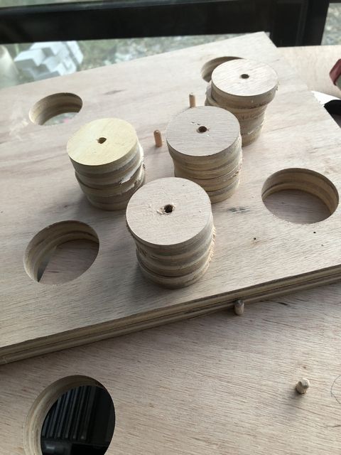 穴の合わせは絶対にズレるので木ダボを2本打ち込んでズレが出ない様にした。