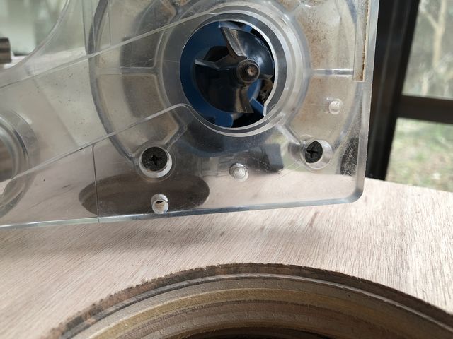 実際には穴径122mmなのでホールソーで穴明け後にトリマーでちょっとだけ削ってやる。