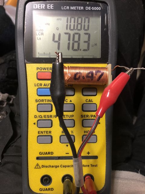 ウーファーに使用するコイルは0.47mH なのだが、手持ちには無かったので0.68mHのコイルを20ターン程巻き戻した。ウーファー用のコイルの直流抵抗はダンピングファクターに影響するので、出来るだけ巻数が少なくて済むコア入りを使用した。