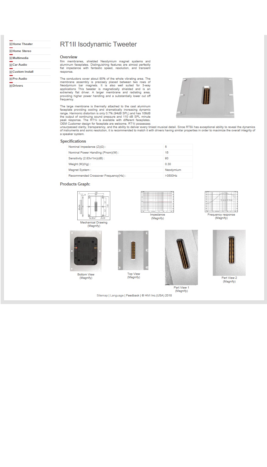 それに対してツィーターRT1IIの能率は93dB/m(2.83V) という表記になっている。