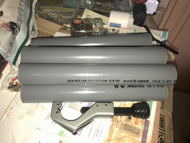 いよいよ音出しだが、ユニットを取り付ける前に、買ってあった2mのVU40の塩ビ管をダクト用にカットする。