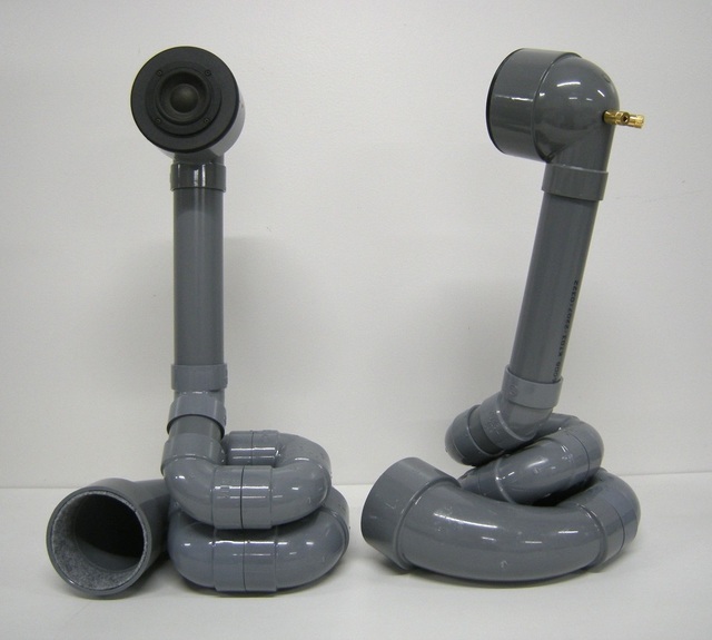 塩ビ管を用いたバックロードでは、ホーン開口部の形状が音質に大きく影響するように感じています。今回は異径大曲エルボーという部品ありきで製作を進めたのですが、それが音質的にマイナス要因になっては本末転倒です。 |