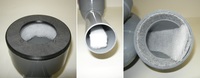 吸音材には水槽用ろ過フィルタを用いました。空気室には少量を円筒側面に沿わせ、ホーン部には細長く切ったものを音道に沿うように挿入しました。 | ||||||