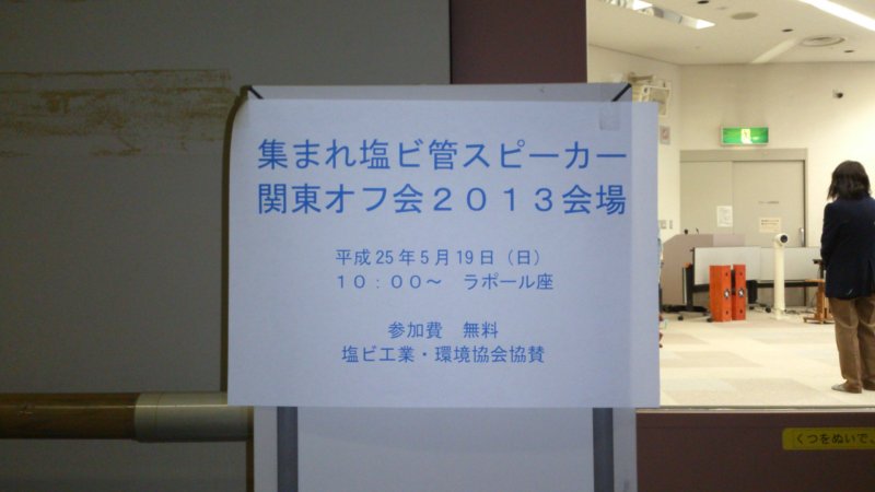 • 昨年に引き続き、今年も塩ビ工業・環境協会さんからの協賛金をオフ会会場費・運営費に使わせていただきますので、今回も参加費は無料となりました。また、スピーカー持参の参加者の方々には、参加賞としてSDHCメモリ16GBを配布しました。 どうもありがとうございます。