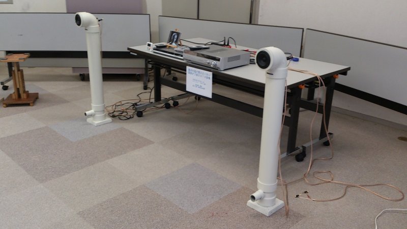 毎回低域の気難しさに悩まされてきましたが、昨年6月のルームチュ-ンオフの結果、正面奥を発表スペースに変更しました。 前回よりも低域の出方が良くなったと思います。 但し最後列とその前列で聴くとは相変わらずのだらだらな低域だったとのことでした。
