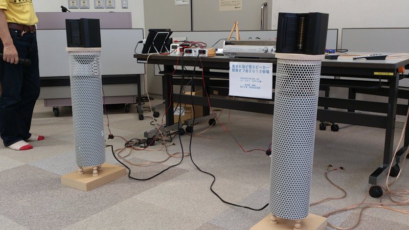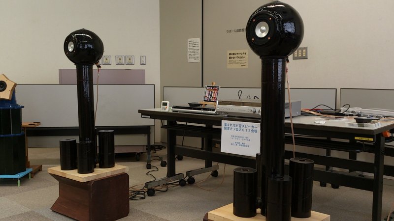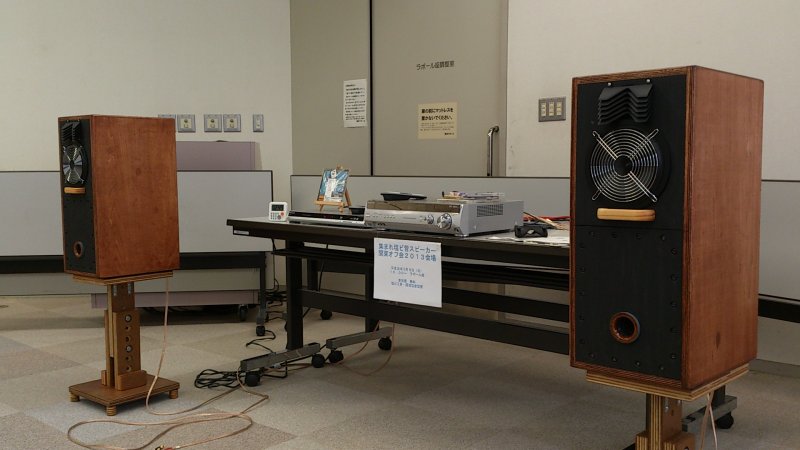 • 鹿児島から、試聴のみということで参加させていただきました。運営の方々、発表の方々、お疲れ様でした。あれだけの広さの会場で、小口径ユニットでも十二分に鳴らせことに感心しました。また、それぞれの作品に人柄を感じさせるものがありました。来年も都合がつけば、参加させて貰いたいと思っております。有り難うございました。 -- デメタン 2013-05-21 (火) 23:01:34