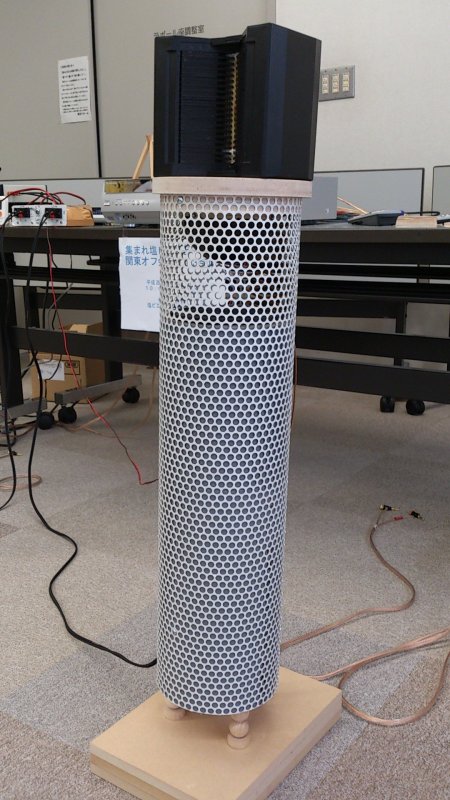 • 皆様、コメント頂きましてありがとうございます。 一般的なスピーカ構造(コーン型ダイナミック・スピーカの例で言いますと雰囲気的にはダンパーレス(本来ボイスコイル側の安定性を確保するため)のイメージで考えますと振動子の動作が軽くなって、その上分割振動がなくなったかな? と言うイメージでお考え下さい。 次のテーマは、やはりWooferとのコンビネーションです。 頭の中では今週からスタート(?)かな? 電車の中、移動中などでふと我に返って考える。 (大きな課題になりました。 -- nabe3 2013-05-21 (火) 07:29:12